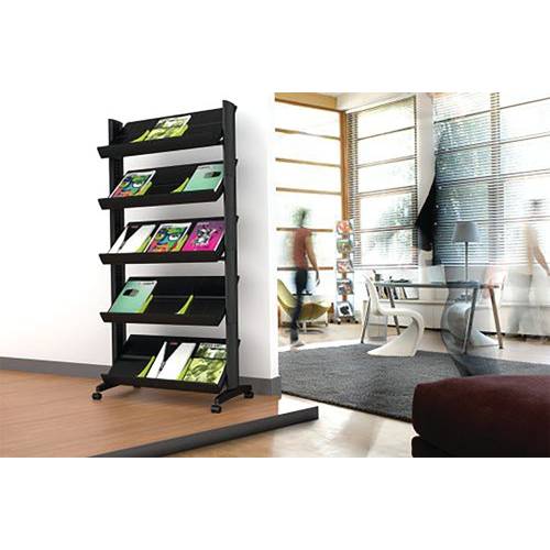 - Fast Paper Mobile 5 Shelf Wide Literature Displays are great for conferences, receptions, waiting rooms and more, the Fast Paper Mobile Literature Display lets you display a wide range of magazines, catalogues, journals and more for your visitors. This model features five wide shelves for arranging an array of literature up to A4 size. The shelves themselves can be adjusted in 20mm increments and from 45 to 75 degrees, letting you customise your display. The whole display sits on four castors for easy mobility and comes in a sleek black finish.