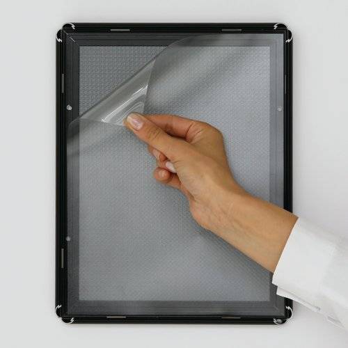 - A very neat narrow 15mm profile snap frame for smaller sizes. It is so easy to clip open the aluminium frame to access your poster or graphic image which is protected by an anti-glare plastic cover sheet. Available in black powder coat finish.