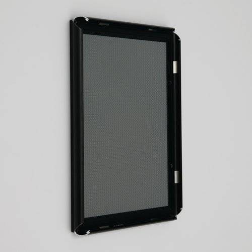 A very neat narrow 15mm profile snap frame for smaller sizes. It is so easy to clip open the aluminium frame to access your poster or graphic image which is protected by an anti-glare plastic cover sheet. Available in black powder coat finish.