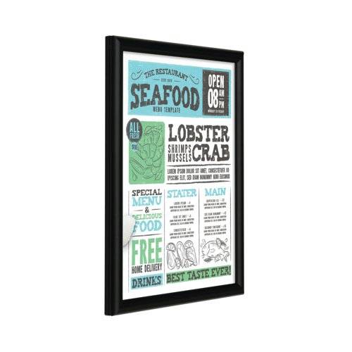 A very neat narrow 15mm profile snap frame for smaller sizes. It is so easy to clip open the aluminium frame to access your poster or graphic image which is protected by an anti-glare plastic cover sheet. Available in black powder coat finish.