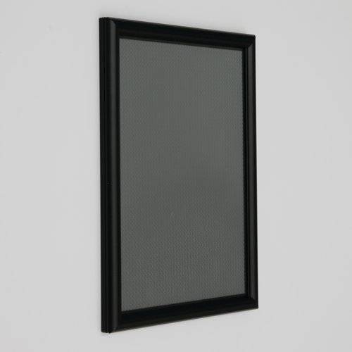 - A very neat narrow 15mm profile snap frame for smaller sizes. It is so easy to clip open the aluminium frame to access your poster or graphic image which is protected by an anti-glare plastic cover sheet. Available in black powder coat finish.