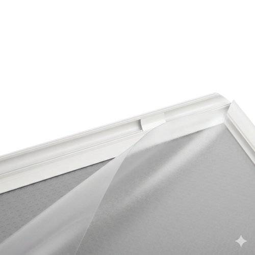 - A very neat narrow 15mm profile snap frame for smaller sizes. It is so easy to clip open the aluminium frame to access your poster or graphic image which is protected by an anti-glare plastic cover sheet. Available in white powdercoat finish.