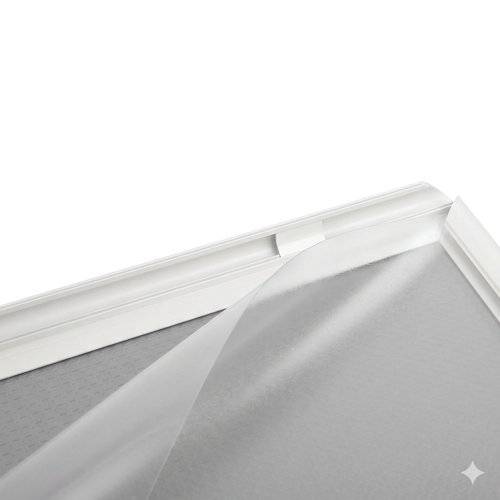 - A very neat narrow 15mm profile snap frame for smaller sizes. It is so easy to clip open the aluminium frame to access your poster or graphic image which is protected by an anti-glare plastic cover sheet. Available in white powdercoat finish.