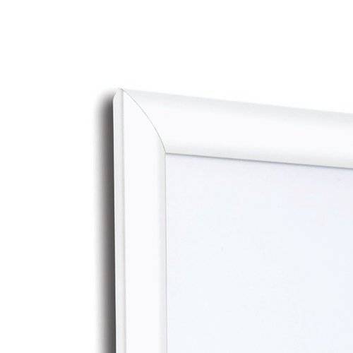 - The standard 25mm profile snap frame. It is so easy to clip open the aluminium frame to access your poster or graphic image which is protected by an anti-glare plastic cover sheet. Available in white powder coat finish.