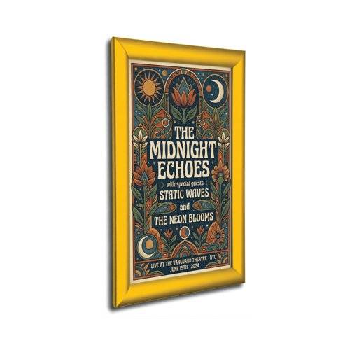 The standard 25mm profile snap frame. It is so easy to clip open the aluminium frame to access your poster or graphic image which is protected by an anti-glare plastic cover sheet. Available in gold powder coat finish.
