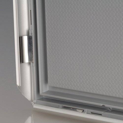 The standard 25mm optiframe snap frame. It is so easy to clip open the aluminium frame to access your poster or graphic image which is protected by an anti-glare plastic cover sheet. Available in silver anodised finish.
