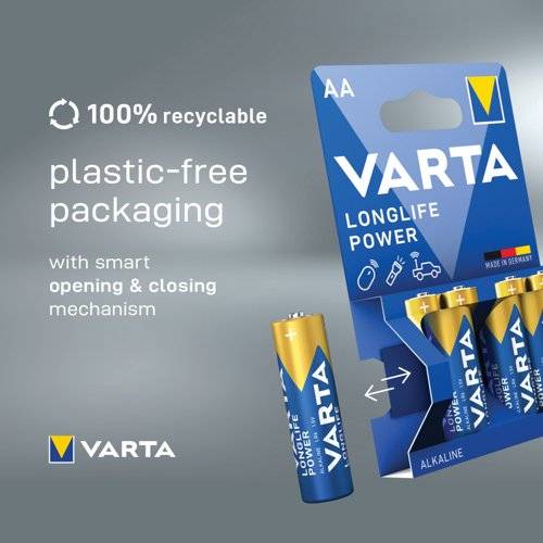 - Varta Longlife Power is a powerful battery for power hungry devices. Suitable for battery operated toys, wireless mice and flashlights, etc., it offers powerful energy with a guaranteed storage time of 10 years. This battery pack contains forty batteries and provides clear communication of usage with pictograms on the pack. Supplied in a compact and convenient storage box displaying the contents through a side cut-out window.