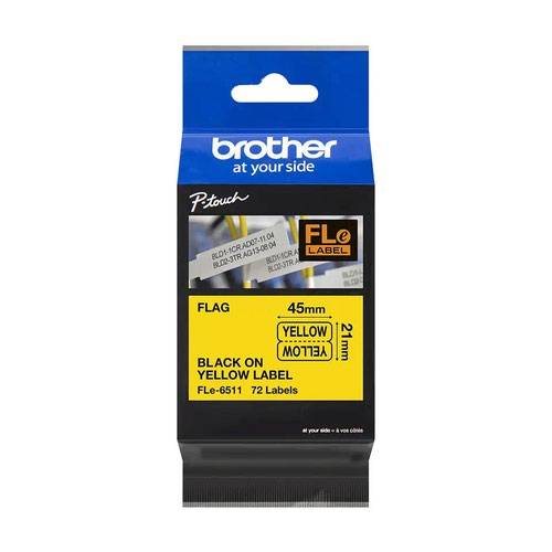 Brother FLE-6511 Die-cut Flexi Flag Label Black on Yellow 21 x 45mm
