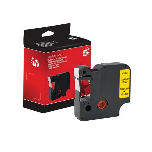 Five Star Non-OEM Replacement for Dymo 45018 Black on Yellow 12mm x 7m FS671601