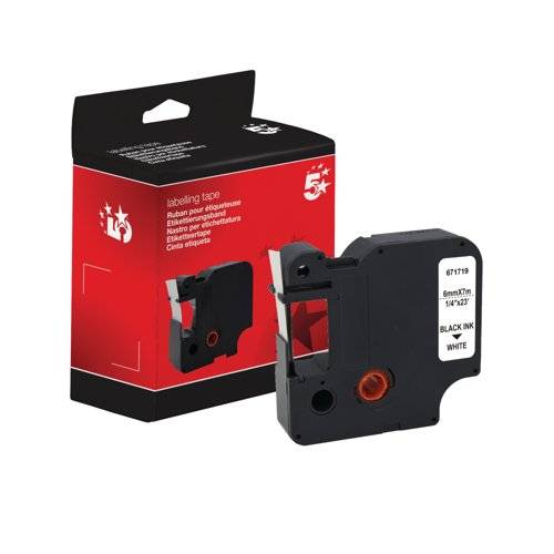 Five Star Non-OEM Replacement for Dymo 43613 Black on White 6mm x 7m FS671719