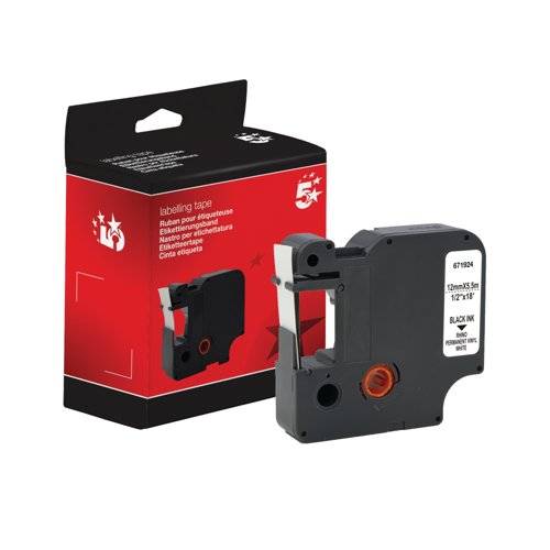 Five Star Non-OEM Replacement for Dymo 18444 Black on White 12mm x 5.5m FS671924