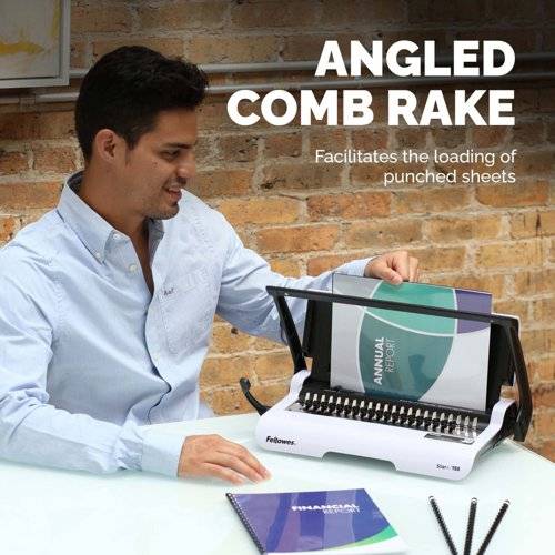 Working with ease to securely fasten your documents, the Fellowes Star Manual Comb Binder is perfect for giving your documents a professional edge. Binding your loose sheets together with a plastic comb, you can create high quality reports, projects and a range of other documents without difficulty. Featuring a mechanism that allows you to bind with ease, the machine is perfect for a range of different users and needs.
