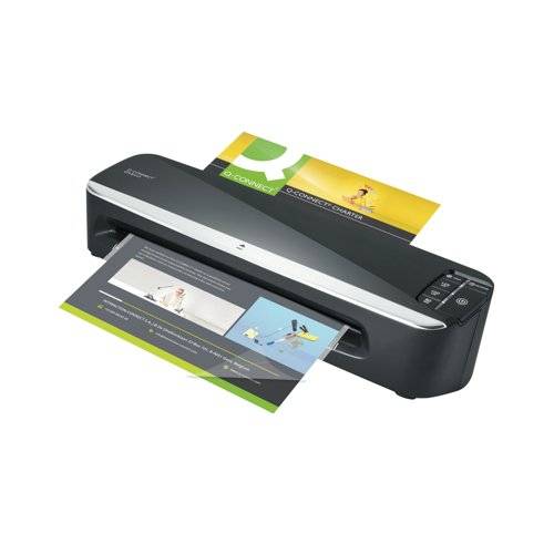 - Q-Connect A3 professional Laminator is useful for laminating business cards, documents and posters up to A3 in size. The laminator has a short preheating time of 1 minute, hot and cold lamination. Featuring a laminating speed of 480mm per minute and laminating range from 75 to 150 micron. Maximum pouch width is 320mm. It also has a jam release reverse button and auto shut-off after 30 minutes.