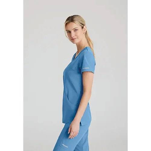 The SK102 Female Reliance V neck scrub top is a modern design great for stylish healthcare staff. With 7 recycled bottles in every top.