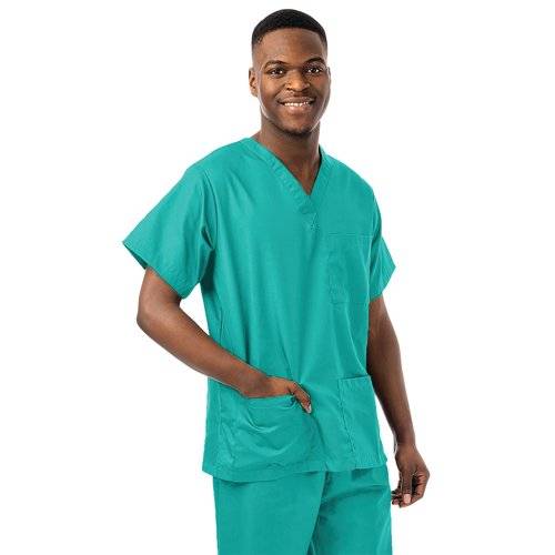 - The 334LW is a top-selling lightweight unisex scrub top designed for maximum comfort. These scrubs feature one left chest pocket and two lower patch pockets for convenience and is made from a durable poly/cotton blend which keeps you cool. This scrub top can be washed at temperatures of up to 85 degrees Celsius for long lasting performance.