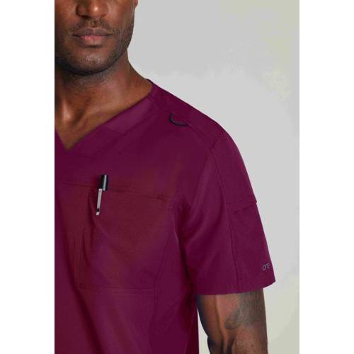 - Revolutionise your medical workwear with the Barco One Velocity Pro Scrub Top. Crafted from five recycled plastic bottles, this eco-conscious top delivers professional style and performance. Featuring a flattering V-neck and slimmer silhouette, it offers 4-way stretch, moisture-wicking technology, and anti-static properties. Practical details like a shoulder badge loop and chest pocket with pen slot make this the ultimate healthcare professional's garment.
