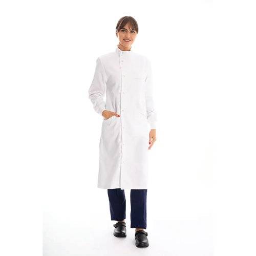 Elevate your professional medical workwear with the Howie Lab Coat from Work in Style. Designed for comfort and functionality, this premium polyester-cotton blend coat features a sophisticated nine-stud fastening, practical pockets, and knitted cuffs. Offers a versatile solution for healthcare professionals seeking quality and style in their workplace attire.