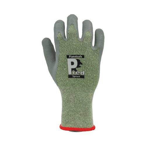 - Pred Spruce Planetsafe Thermal Gloves have a comfortable and dexterous 15g recycled Polyester/Metal Q/Spandex liner (Recycled Post-Consumer), black sandy nitrile foam palm coating and coloured cuff size indicator. Supplied as 1 pair.