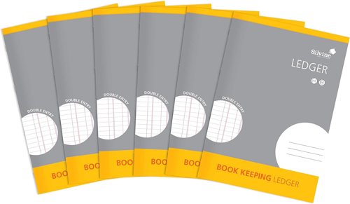 Silvine Portrait Book Keeping Ledger Feint Ruled 8mm 16 Leaves 90GSM A4 (Pack 6) - SJA4L-P