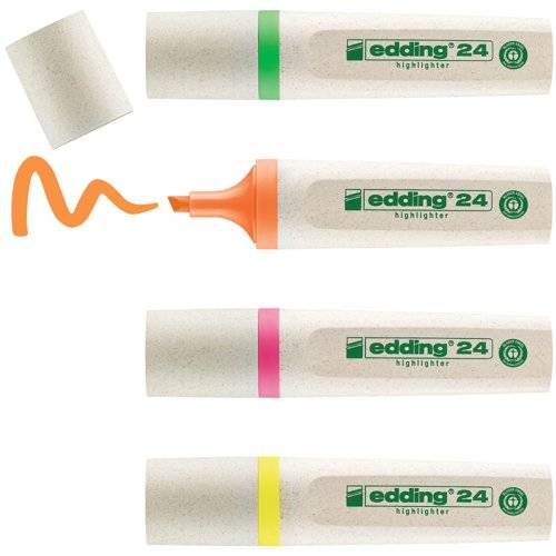 - Brighten your notes sustainably with this 48-pack of Edding EcoLine highlighters in assorted neon and pastel colours. Featuring water-based, quick-drying ink that's lightfast and bleed-resistant, they're perfect for schools, offices, and home use.