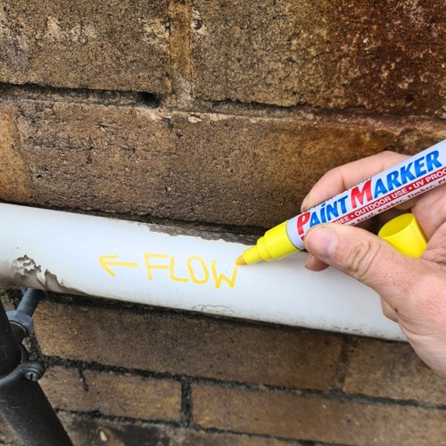 Highly permanent xylene free paint marker. Ideal for indoor/outdoor or industrial use. Waterproof and fadeproof for use on glass; wood; metal; plastic; rubber and most other non-porous surfaces. Fast drying. Bullet tip with valve action for controlled flow.