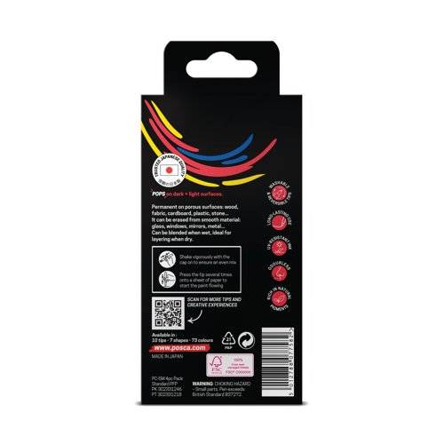 - Perfect for artists, crafters, designers, and hobbyists, each Posca marker pen has a medium 2.0-4.0mm tip for bold lines, colouring, lettering, and medium-detailed work. Allowing for smooth coverage and creative freedom, these Posca paint markers are perfect for mixed-media projects, personalisation, and crafts. The opaque paint adheres to virtually any surface, including paper, card, fabric, metal, plastic, glass, and wood. Supplied in a pack of 4 pens in assorted colours of red, black, blue and yellow.
