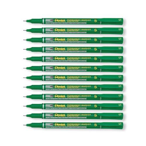 Pentel Permanent Marker Super Fine Point Green Pack of 12 NFS410-D