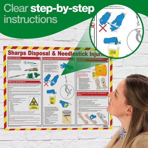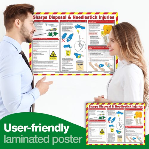 Promote safer workplaces and reduce the risk of sharps-related injuries with this clear, durable Sharps Disposal & Needlestick Injuries guidance poster. Designed for use in hospitals, clinics, labs, pharmacies, and community settings, it delivers concise, step-by-step instructions to help staff prevent incidents and respond quickly and effectively if they occur.