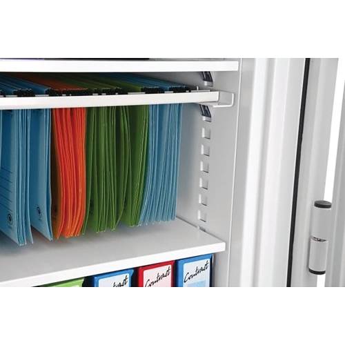 | SPECIAL FEATURES – Supplied with 3 height adjustable shelves that also includes hanging rails for lateral files as standard. Optional pull out shelves & drawers available. |