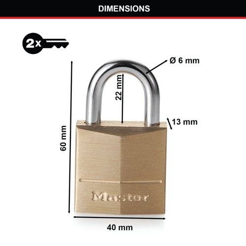Made with a solid brass body and hardened steel shackle this padlock is reassuringly cut-resistant to ensure protection for your personal property. This padlock has been designed with dual locking levers and a 4-pin cylinder, which means essential protection for your possessions and guard against theft.