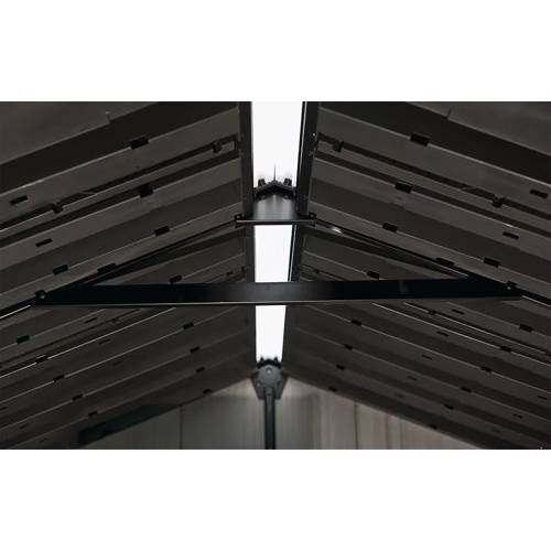 The Oakland Shed is built for durability, its weather-resistant Duotech wall panels provide the look and feel of worn wood. But unlike wood, it will never rot, rust, or dent, and the original finish won't peel. They can also be painted if desired. It includes a heavy-duty floor panel, wide double doors, fixed windows and skylight. Easy to assemble thanks to pre-cut tongue and groove panels. It also comes with a stainless steel locking system for additional security (lock not included). Comes with a D clip wall anchor kit, each set includes 10 anchors that can hold up to 50kg with each D clip holding up to 5kg.