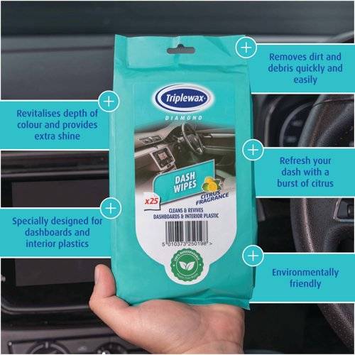 - Triplewax Dash Wipes easily and rapidly removes dirt and debris from dashboards and interior plastic. The wipes are specially designed to revitalise depth of colour and shine, whilst also providing continued protection from dirt and grime. Triplewax Dash Wipes are 100% biodegradable and plastic free, leaving a pleasant citrus fragrance. For safety, do not use on foot pedals or steering wheel and dispose of used wipes in the bin.