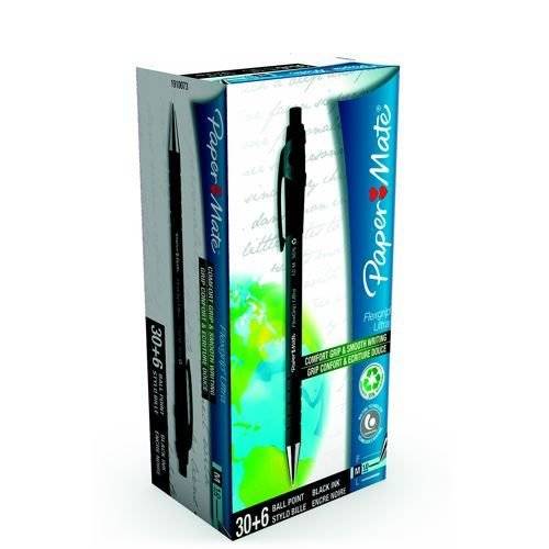 Paper Mate Flexgrip Ultra Retractable Ballpoint Pen 1.0mm Tip 0.5mm Line Black (Pack 30+6) - 1910073