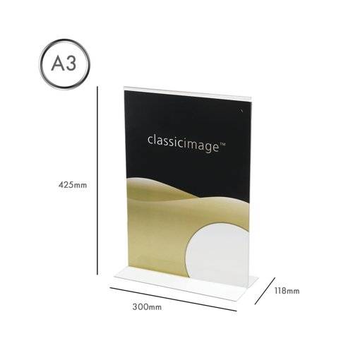 The stand-up sign holder is ideal for table top displays, receptions, restaurants and more. This sign holder provides maximum visibility whilst the smart design loads from the bottom, giving the top a smooth and seamless sealed look.