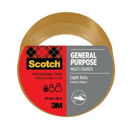 Scotch® General Purpose Packaging Tape makes it easy to wrap, seal, and store light-weight packages at home or in the office. The general use packing tape features a long-lasting adhesive that securely seals packages in storage.