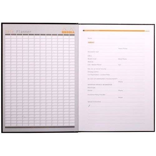 | Date planner and other useful information on inside front cover |