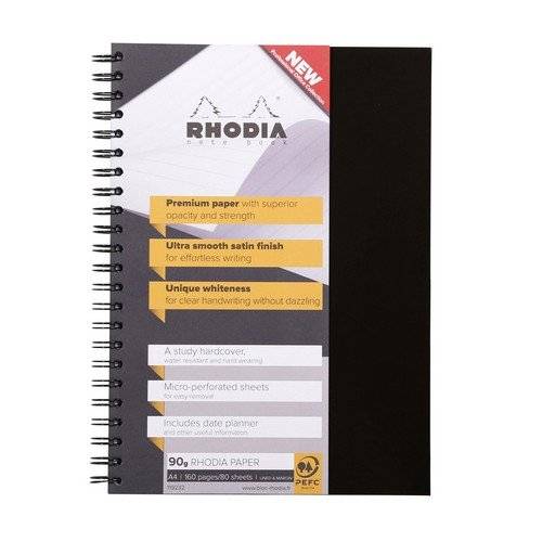 Great for business executives on the move. 90Gsm clairefontaine white brushed vellum paper. Pefc certified. 160 Pages feint ruled with margin. Micro perforated sheets. Inside front sheet printed with year planner. Black twin wire binding. A4 size.