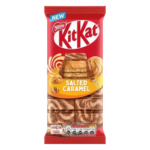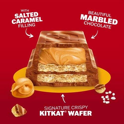 | Crispy KitKat® wafer, salted caramel flavoured filling and covered with thick marbled swirls |