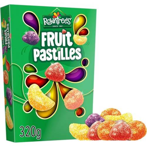 - If you're looking for a chewy, fruity-flavoured sweet, try the irresistible taste of Rowntree's® Fruit Pastilles. Every sharing bag contains a mixture of five fantastic flavours: blackcurrant, lemon, strawberry, lime, and orange. Still irresistibly chewy and now vegan friendly for even more people to enjoy! We're confident that it's our best ever tasting recipe! These classic sweets are a great choice for treat time. And with no artificial colours, flavours or preservatives, you can feel happy to enjoy these as a fun treat. Did you know that Fruit Pastilles are the oldest sweet in the Rowntree's® family? In 1862, Henry Rowntree bought a cocoa works in York and transformed it into a confectionery company. Along with his brother, Joseph, and French confectioner August Claude Gaget, they developed the delicious taste of Rowntree's® in 1881. For more than 130 years these delicious chewy sweets have been making days more colourful with their irresistibly fruity taste and mouth-watering texture.