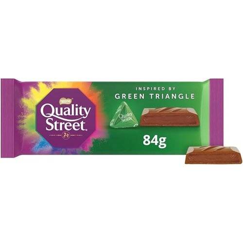 - If you're a fan of creamy chocolate with a deliciously nutty filling, then the NEW Quality Street® Green Triangle block is for you! Enjoy and share the deliciously bite-sized treat filled with smooth, nutty chocolate! Quality Street® has always been famous for its bright and colourful packaging - and we are returning to our roots, introducing recyclable paper wrappers similar to those which appeared in the first selection in 1936! When you bring home our famous individually wrapped chocolates, nobody will be able to wait to dig through and find their favourite. Whether you’re enjoying the iconic Christmas sweets on the special day or just spending time together as a family, create moments that you can treasure forever with Quality Street®.