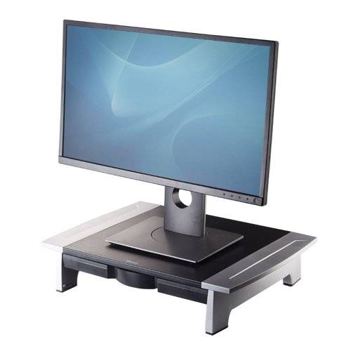 - This Fellowes Office Suites Monitor Riser places your monitor at a comfortable viewing angle for ease of use and prevents aches and strains associated with computer use. Supports CRT or TFT monitors up to 36kg and features a storage drawer and space to stow laptop underneath for your convenience.