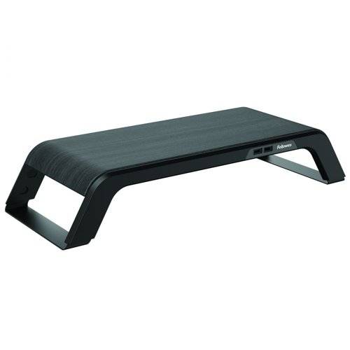 Raises your Monitor screen to a comfortable viewing height and angle to reduce eye, neck and shoulder strain. Features an easily accessible fast charging dual USB ports to keep devices powered and includes rear-facing dual USB data ports to easily connect devices such as mouse and keyboard.