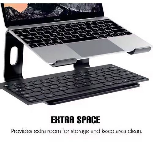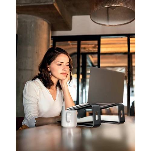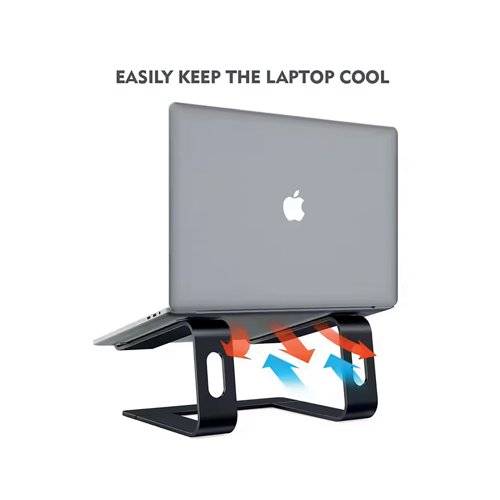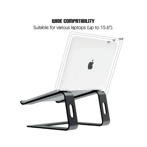 - Riser style aluminium laptop stand suitable for laptops up to 17 inch in black