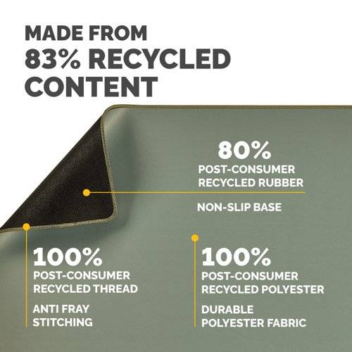 | MADE FROM 83% RECYCLED CONTENT - This Fellowes desk mat is made from 83% post-consumer recycled content |