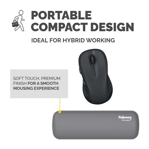 - Experience all-day comfort and enhanced support with the Fellowes Breyta™ Palm Rest. Designed to conform to your wrist, it helps relieve pressure and fatigue while typing and mousing, making it ideal for long work sessions. The soft-touch, anti-dust coated surface delivers a premium finish and smooth mousing experience. Made with Microban® antibacterial technology, it offers continuous hygienic protection, perfect for shared or high-use environments. Its lightweight, compact design makes it easy to carry, supporting hybrid working without compromising on comfort. Fully recyclable through the Fellowes takeback scheme*. The Breyta™ Palm Rest is a practical addition to any workspace.