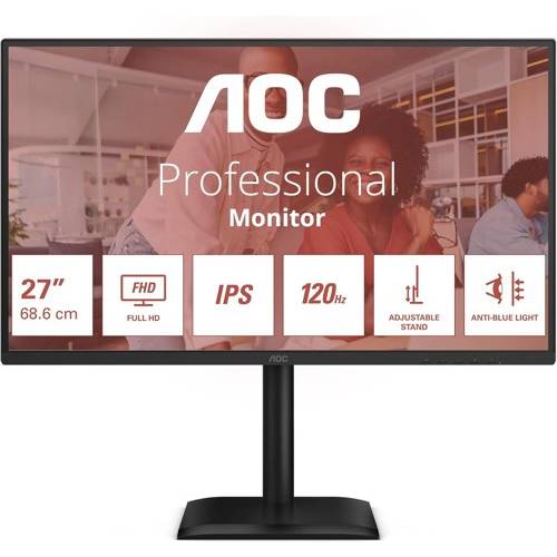 - The 27E4U offers a 27'' FHD display with a 120Hz refresh rate, delivering crisp, smooth visuals for an enhanced viewing experience. Its Height Adjustable Stand (HAS) provides ergonomic flexibility, while the hardware-based anti-blue light feature helps reduce eye strain during extended use. With Adaptive Sync technology for seamless performance and a 5-year warranty for lasting reliability, this monitor is a practical and dependable addition to any workspace.