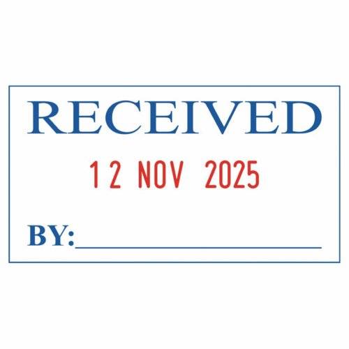 Colop green line self-inking received date stamp made from a minimum of 80% recycled plastic. Prints a 4mm changeable date with the word received. 12 Years of date bands. Prints in two colour - received in blue and the date in red. Easily replaceable ink.