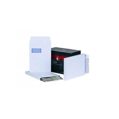 - Ideal for mailing bulky items such as catalogues; reports; brochures and more; these Plus Fabric envelopes feature an expanding 25mm gusset and durable; heavyweight 120gsm bright white paper. The envelopes also feature a convenient address window measuring 45 x 100mm and simple peel and seal closure with Power-Tac adhesion for a quick; strong seal. Suitable for A4 documents; this pack contains 100 C4 envelopes.