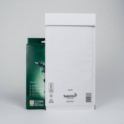 Mail Lite Plus Bubble Lined Postal Bags. Lightweight gloss White kfraft postal bags ideal for protecting fragile goods in the post. Features include Peel & Seal closure and an easy opening Red tear strip. Size, 220mmx330mm.