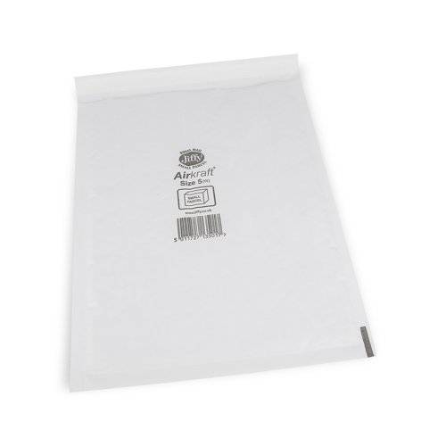 - Save on postage costs with this lightweight bubble lined Jiffy Airkraft mailer. The lining is designed to be puncture and shock resistant to protect delicate or fragile items in transit. The mailer also features a strong simple self-seal closure. These size 5 white mailers measure 260 x 345mm. This pack contains 100 white mailers. The bubble that inner lines the mailers is produced using a minimum of 30% recycled content.